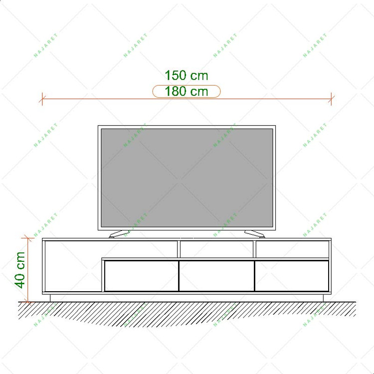 این میز تلویزیون دارای عمق یا عرض 40 سانتیمتر می باشد.