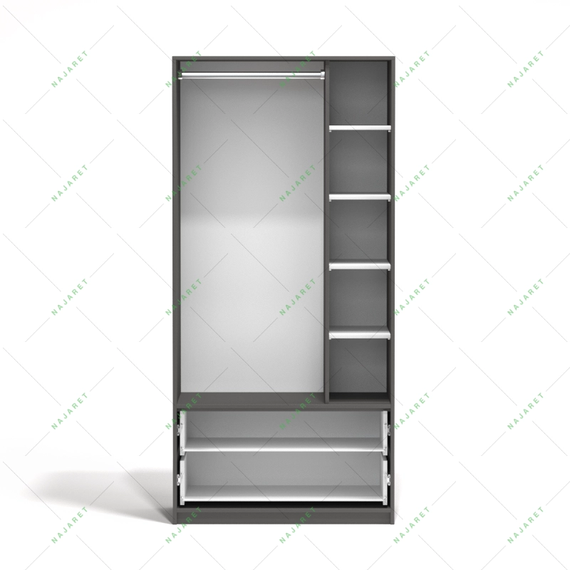 این کمد لباس کشودار در دو جنس قابل سفارش است: امدیاف درجه ۱ و نئوپان ملامینه